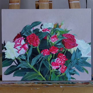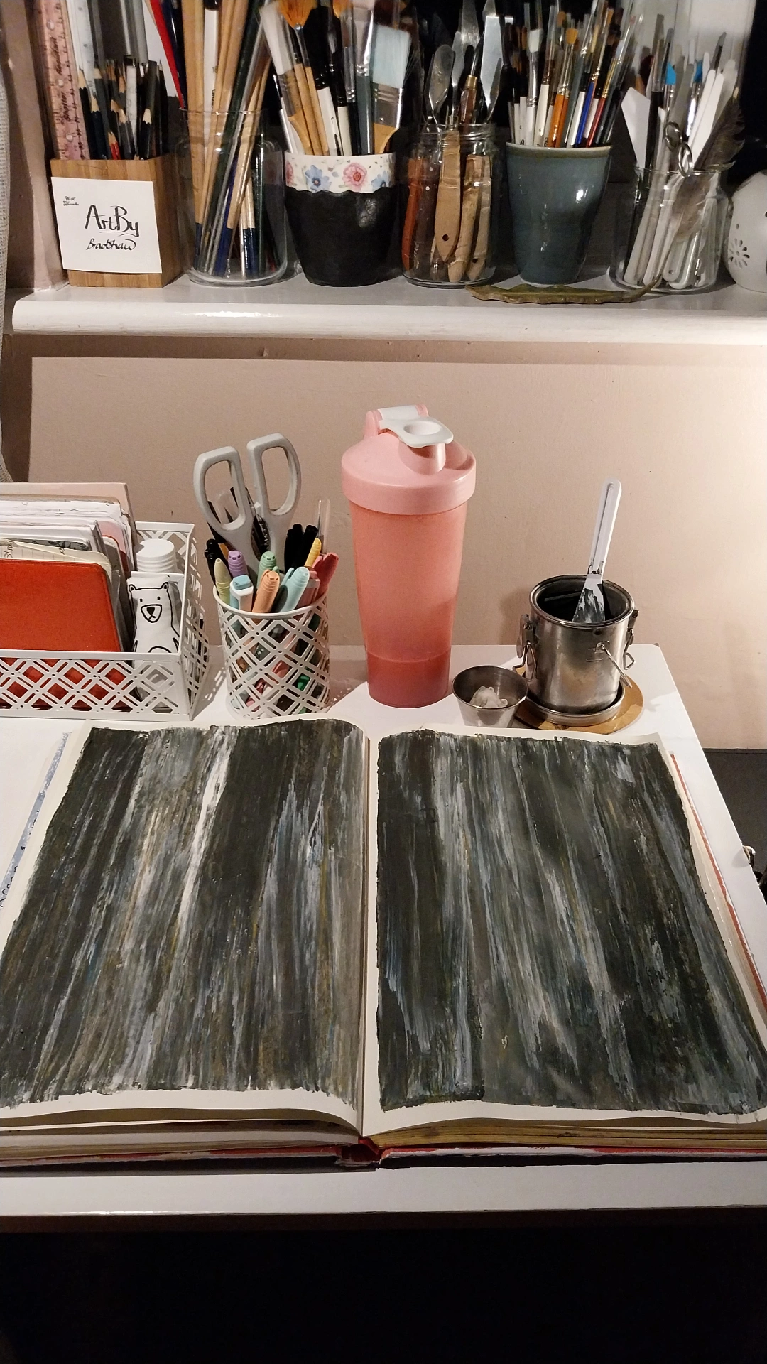 Here is the artwork I've been working on recently. I've started working on a pet portrait commission, which I'm working on creating a landscape background for. I also made good progress on my roses painting and lemon. I have also enjoyed art journalling aside from big projects and enjoying the sunshine.